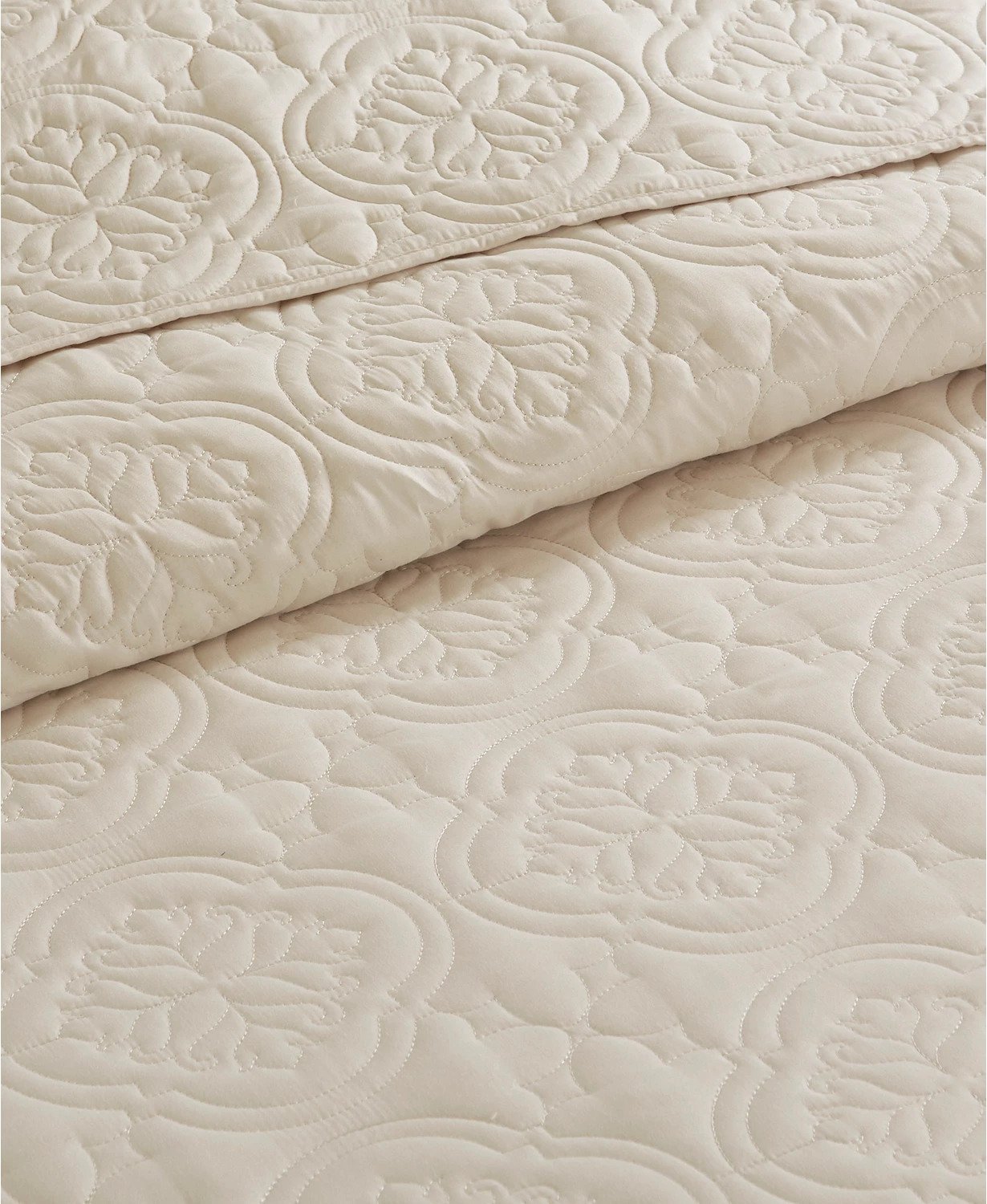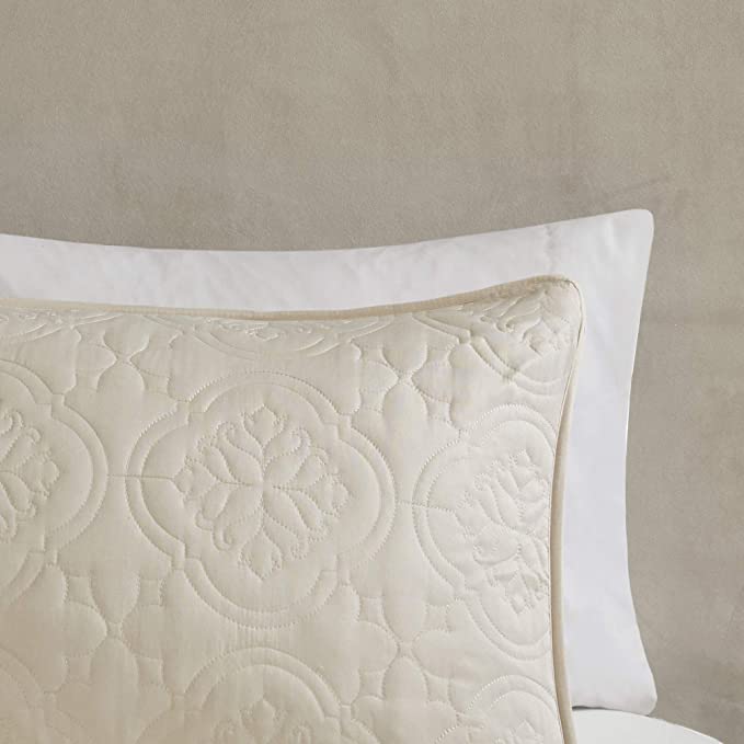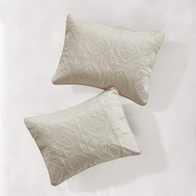 The 510 Design Oakley 3 Piece Reversible Bedspread Set offers a simple and stylish addition to your bedroom decor. A quilted medallion technique is displayed on the cream bedspread and shams, adding dimension and charm to the top of the bed. Unlike traditional coverlets or quilts, this bedspread is oversized to drape better and features 100% hypoallergenic polyester filling. Made from ultra-soft microfiber, this oversized cover up is machine washable for easy care and adds a chic transitional allure to your bedroom.