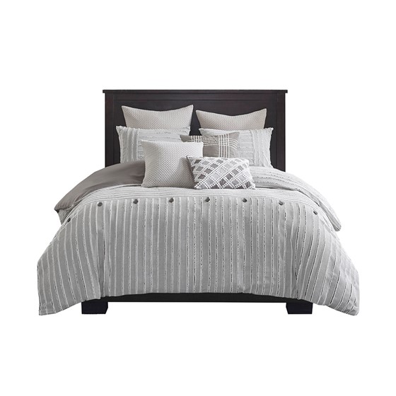 Essence Oversized Cotton Clipped Jacquard 8 Piece Queen Comforter Set (Grey)