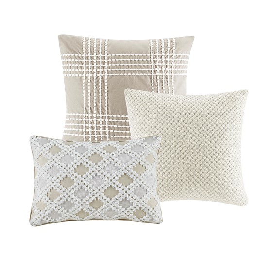 • Knit and embroidered decorative pillows have removable cover with hidden zipper