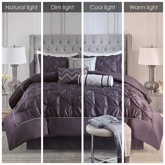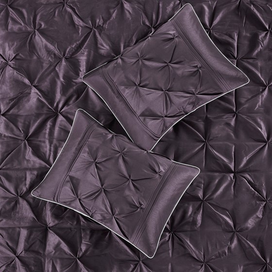 This beautifully tufted bed is from the Laurel bedding collection. Its deep plum colouring makes this set create a statement in your bedroom. The collection is made from 100% polyester polyoni and has pieced fabric sewn together to give this set dimension. It is finished with a smooth edge of fabric that creates a beautiful border around the comforter. Items in the set may come in a rolled or compressed packaging, which will need to be fluffed up or steam ironed before use to remove wrinkles.