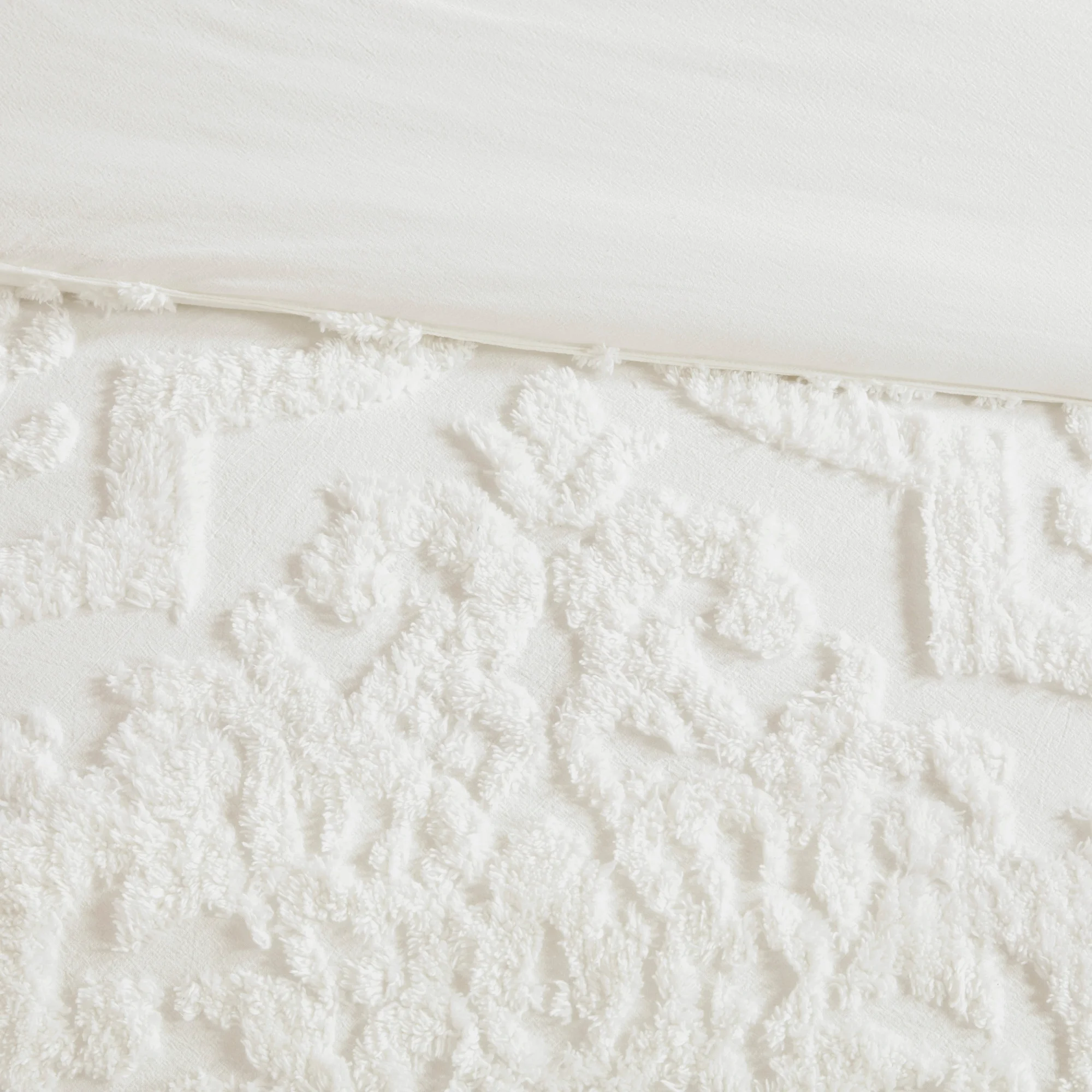 Madison Park Aeriela Tufted Cotton Chenille Damask Duvet Cover Set – Off White – Queen