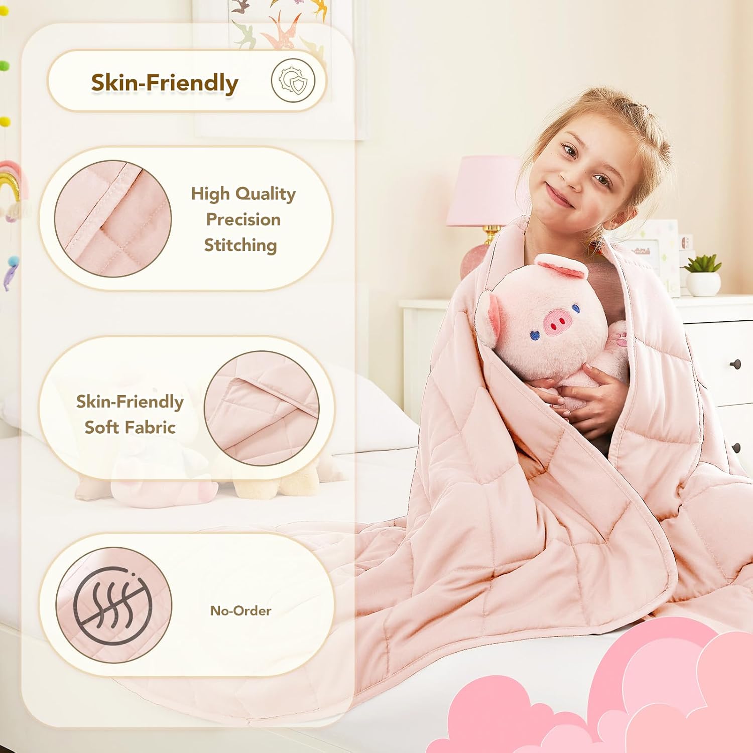 • The blanket is adopts a unique 40-layer design with precision stitching that prevents the leaking of glass beads, ensuring that they are evenly distributed in each pocket.