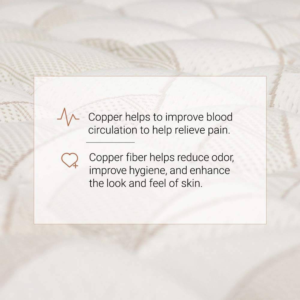 - Copper Technology – the copper infused fibers are naturally cooling and fight against odour causing bacteria while you sleep. These unique features help to provide a healthier, more relaxing sleep.